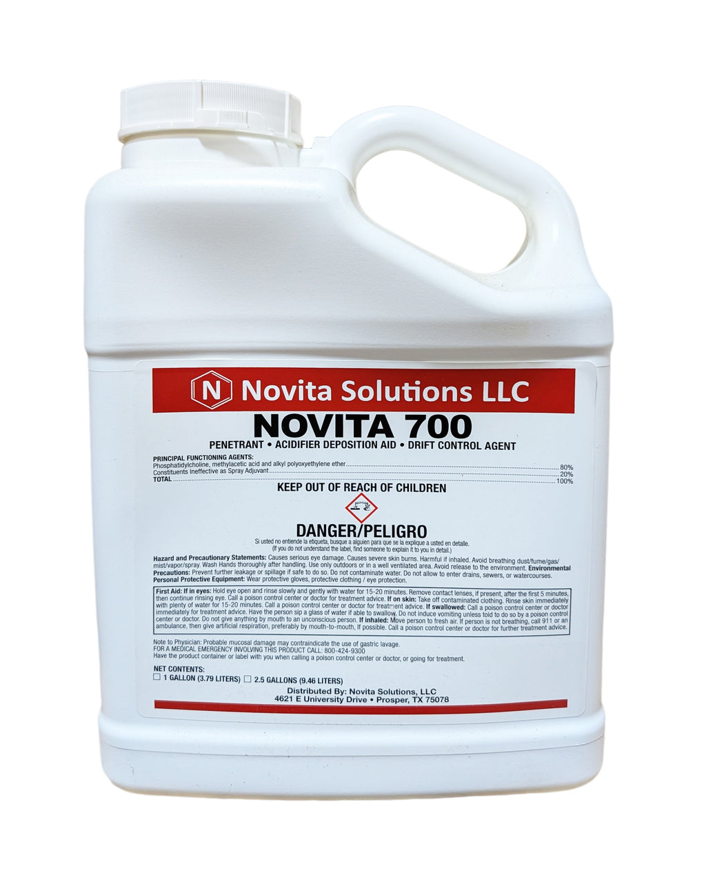 Novita 700 is a premium blend of soy lecithin, non-ionic surfactants, acidifiers, and drift control agents that enhances pesticide performance by improving penetration, deposition, drift reduction, and pH management. Designed for use with herbicides, fungicides, insecticides, and foliar nutrients, Novita 700 ensures optimum spray coverage and stability—even in challenging water conditions. Its acidifying properties help maintain the desired spray solution pH for maximum effectiveness of tank-mixed pesticides.