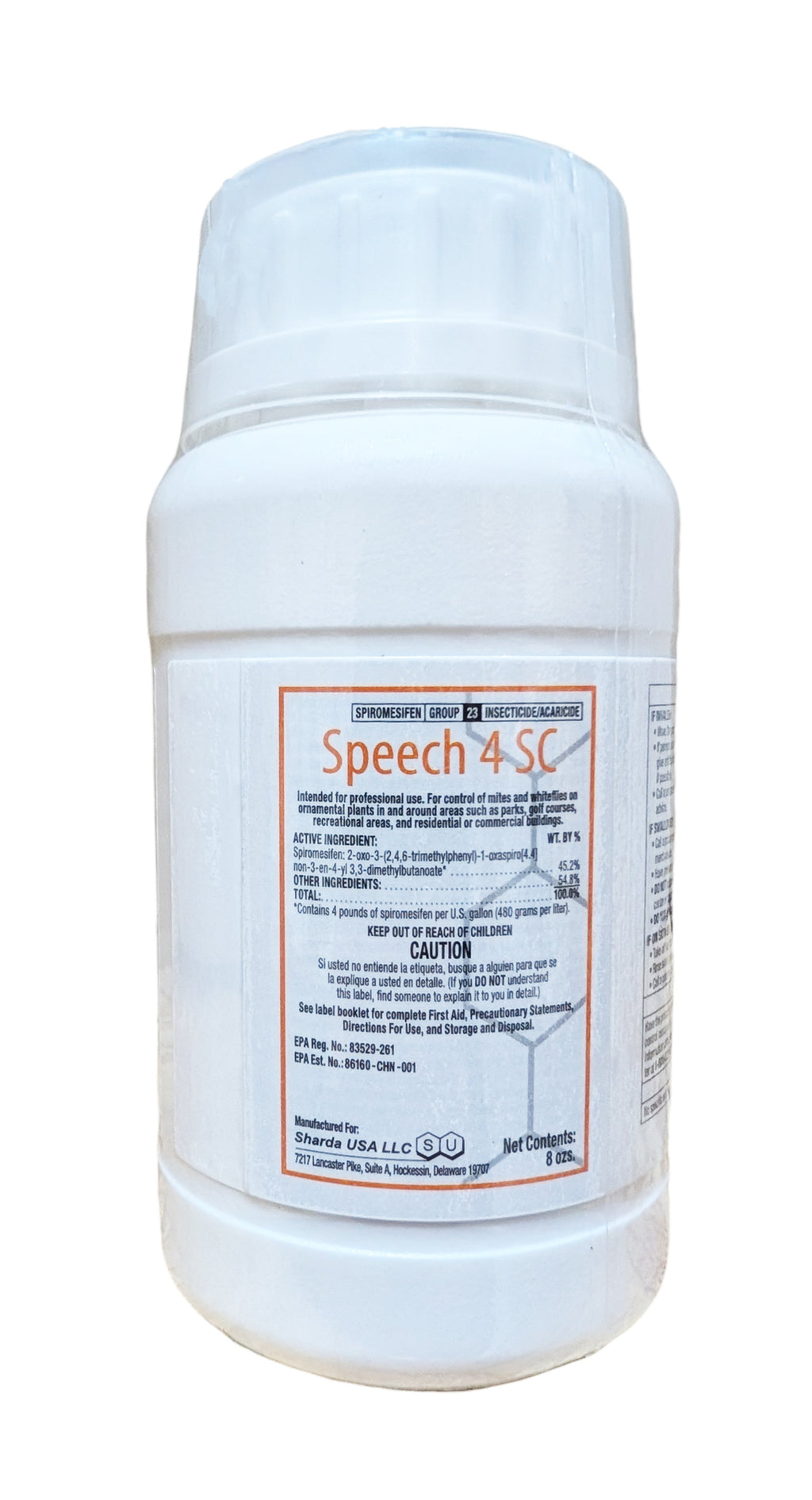 Speech 4 SC is the generic equivalent of Forbid 4F, delivering outstanding knockdown and long-lasting residual control of mites and all stages of whiteflies for up to eight weeks. With its unique mode of action, Speech 4 SC provides exceptional control of pest populations resistant to conventional products. Applied as a foliar spray, it penetrates leaf tissue with excellent translaminar movement for complete, lasting protection while maintaining minimal impact on beneficial insects when used according to label directions.