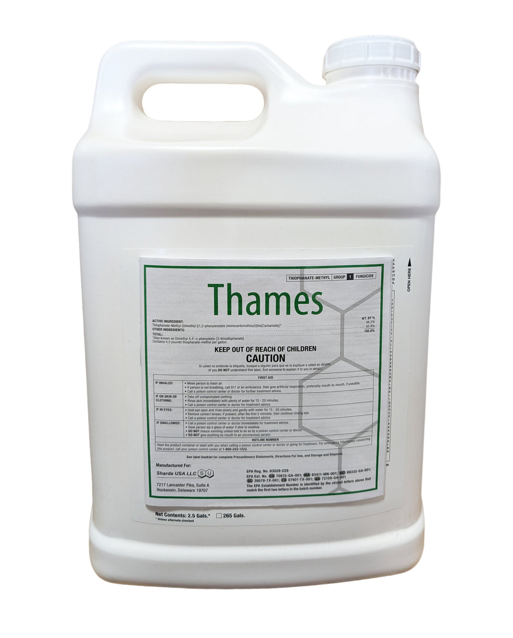 Thames Fungicide delivers powerful, broad-spectrum disease control in an easy-to-use flowable formulation. With both preventive and curative properties, Thames provides dependable protection for turf and ornamental plants against some of the most persistent fungal diseases. Its systemic mode of action ensures thorough internal protection, while its tank-mix compatibility and chemigation label make it one of the most flexible fungicide options on the market.